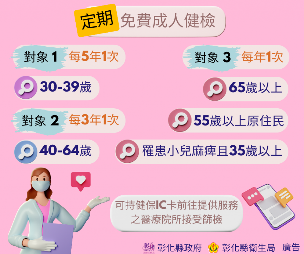 (八)定期免費成人預防保健篩檢(圖片)。