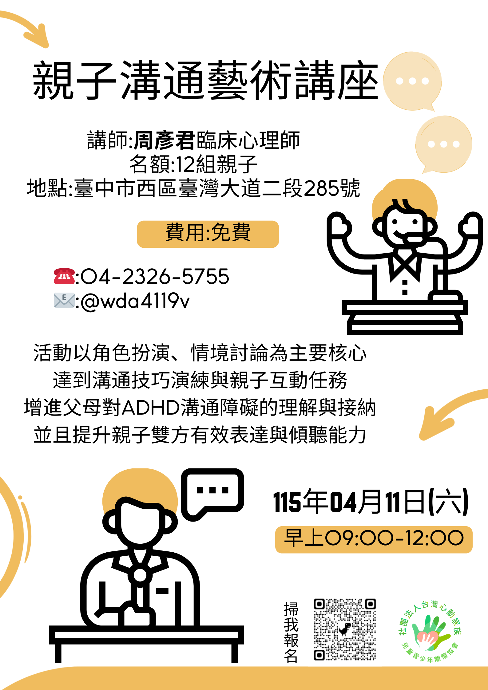 轉知:台灣心動家族兒童青少年關懷協會主題講座