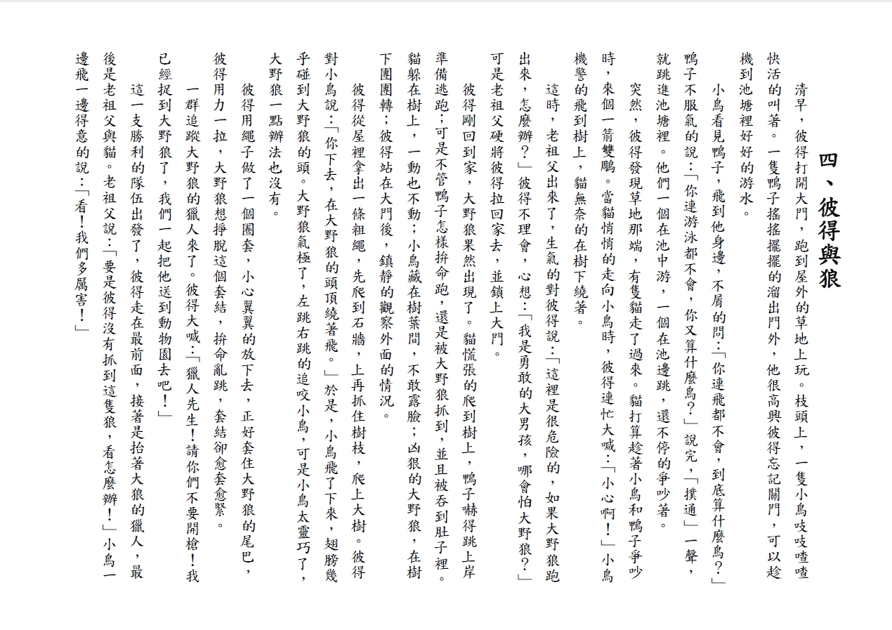 二、國語朗讀篇目(附件二及附件三):彼得與狼、巨人與小孩